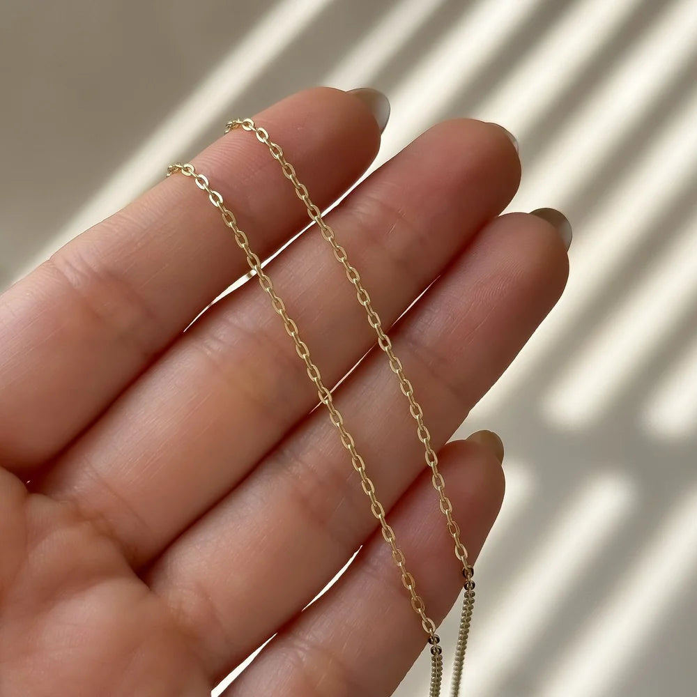 Cadena fina de 45cm de largo. Nuestras joyas en oro laminado 18k están diseñadas para ofrecer elegancia, durabilidad y tranquilidad en cada uso. Gracias a su recubrimiento de tres baños en oro, mantienen su color y brillo por más tiempo, sin oscurecerse ni perder su acabado.